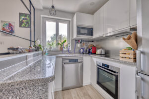 Cuisine semi-ouverte, aménagée et équipée, pensée pour les moments de partage,